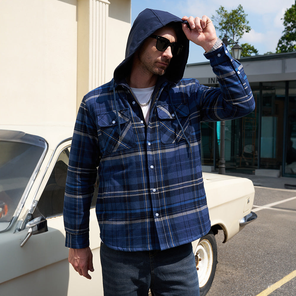 Men's Quilted Flannel Jacket - Warm Winter Padded Shirt