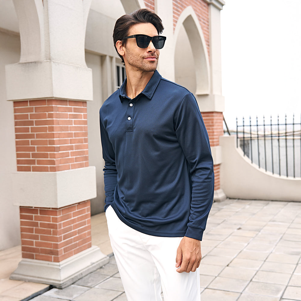 Men's Long Sleeve Quick-Dry Polo Shirt UPF Sun Protection