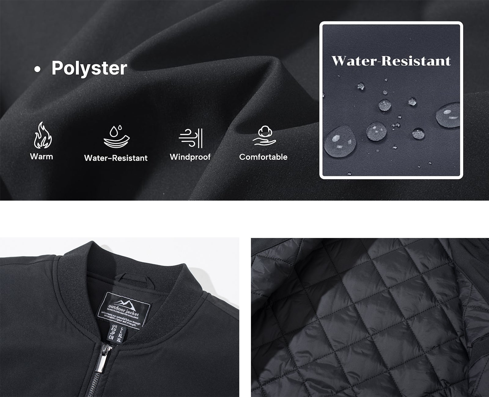 Men's Bomber Jacket, Quilted & Windproof with Pockets