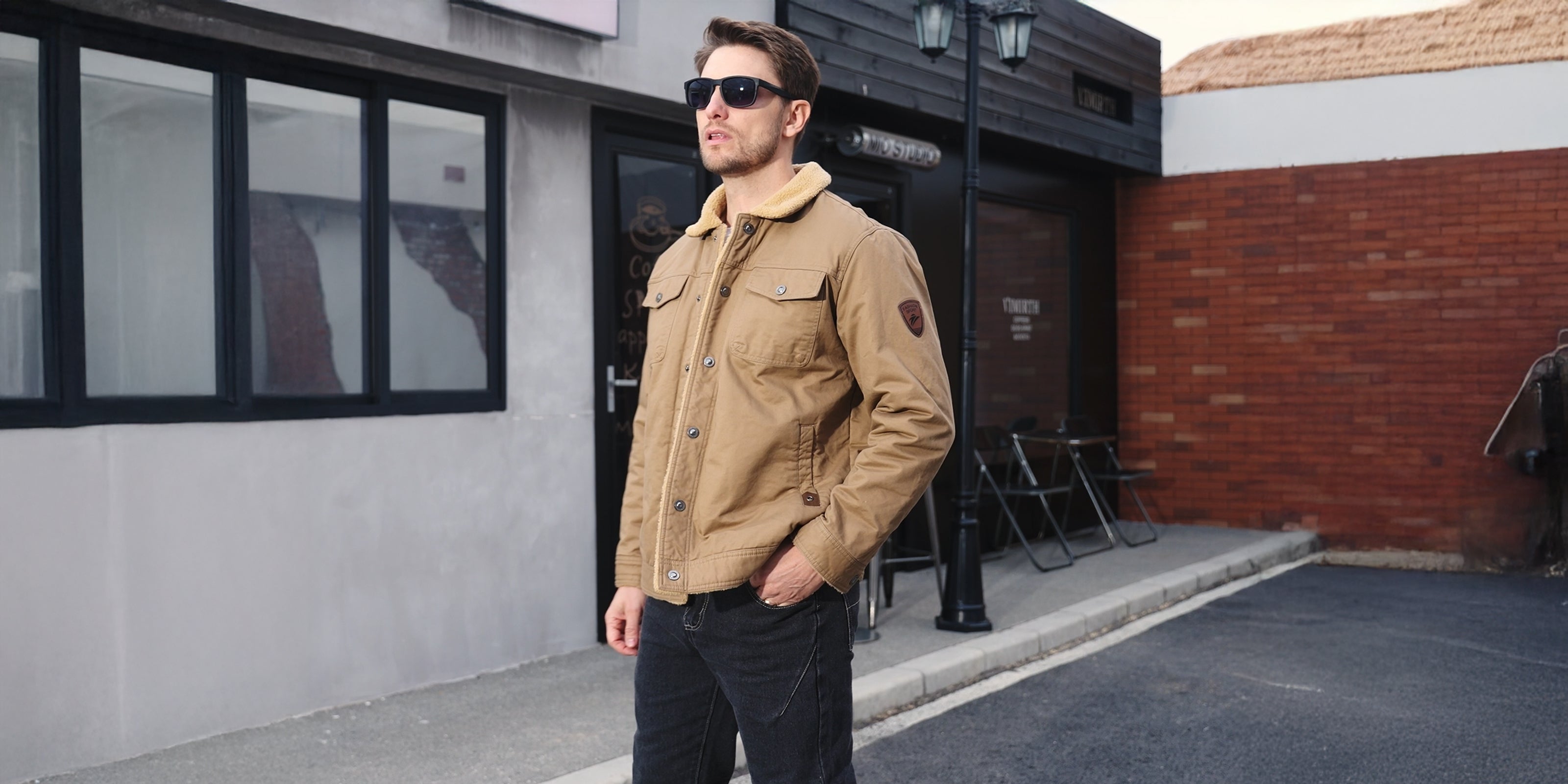 Men's Sherpa Lined Jacket with Multi Pockets