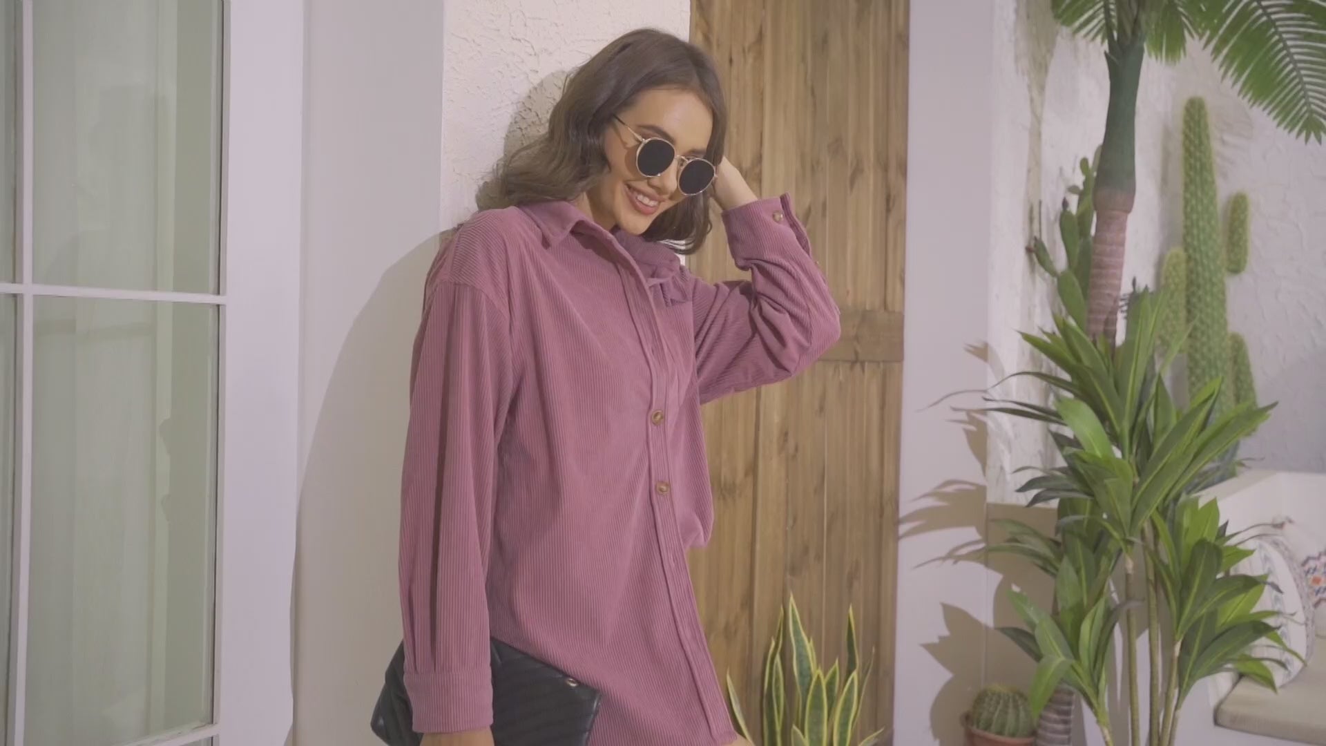 Women's Long Sleeve Corduroy Shirt with Pocket
