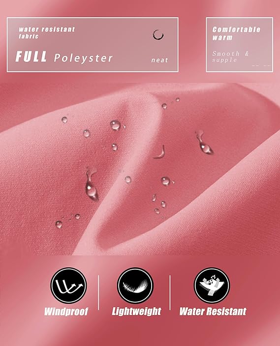 Fabric: Lightweight, water-resistant, windproof polyester.