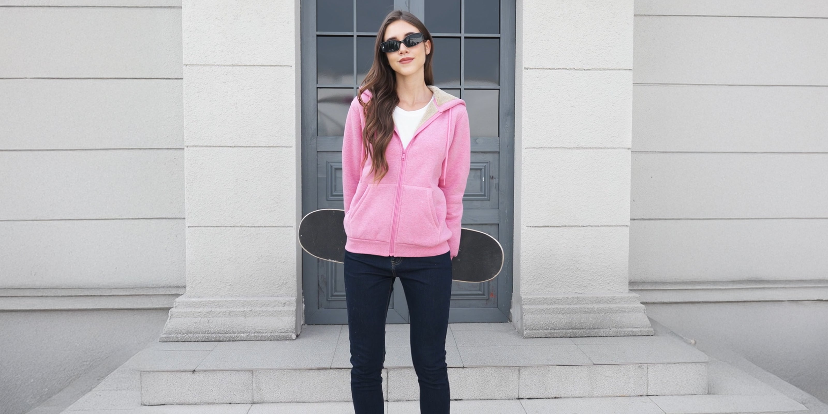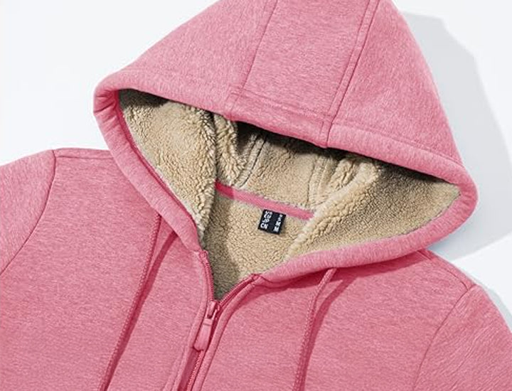 Women's Zip-Up Sherpa Lined Fleece Hoodie Jacket
