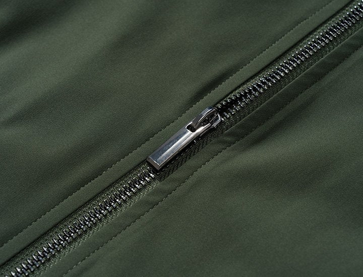 - Classic Design: Features a stand-up collar, wide rib-knit hem, and full-length metal zipper for a clean, structured look.