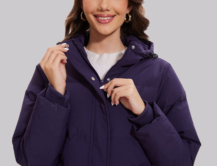 Waterproof & Windproof Shell: Don't let the weather stop you. The high-density polyester fabric effectively repels rain and light snow. Paired with an adjustable quilted hood and drawstrings, it forms a windproof barrier to protect your head and neck from gusty winds.