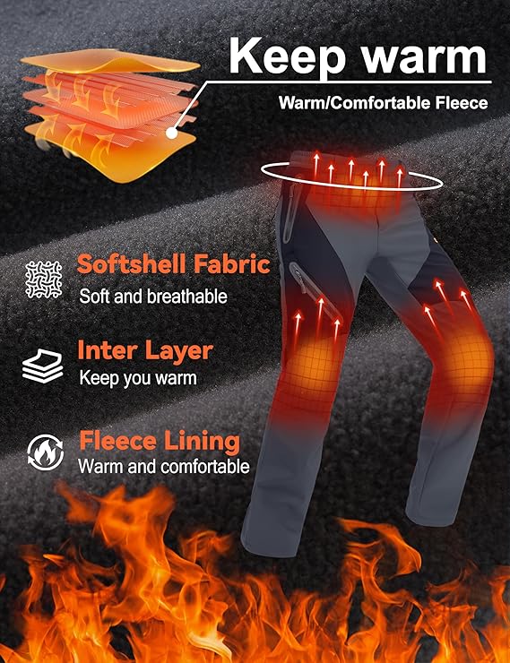 Men's Fleece-Lined Waterproof Snow Pants with Zip Pockets