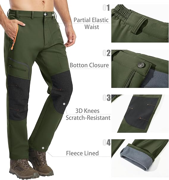 Men's Fleece Lined Softshell Pants Water Resistant Ski Pants