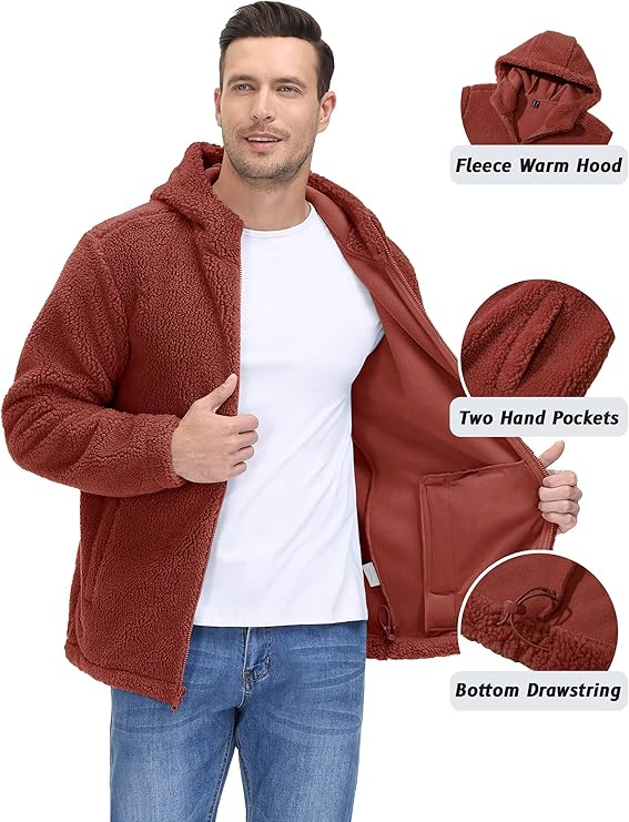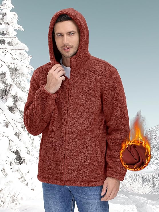 Men's Fleece Hoodie Sherpa Jacket Full Zip with 4 Pockets