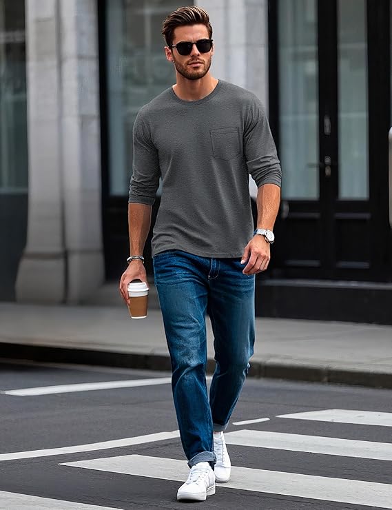 Men's Basic Long Sleeve Shirt Casual Lightweight T-Shirt